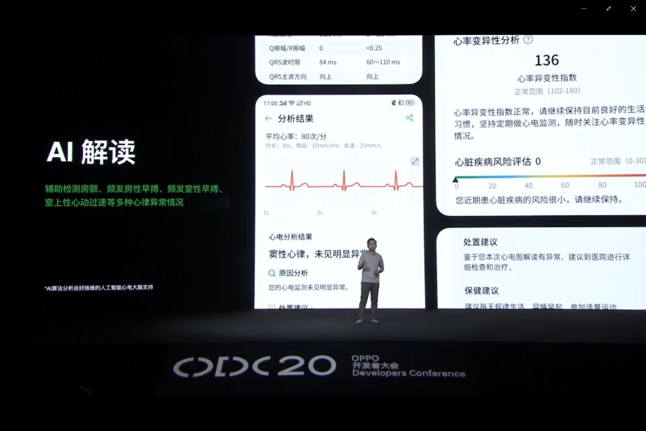 大會現場,由OPPO新興穿戴產品規劃部總監許琨以“科技引領 智慧創新 - 開啟健康生活新方式”為主題演講,并重磅發布了好絡維與OPPO的心電服務合作。
