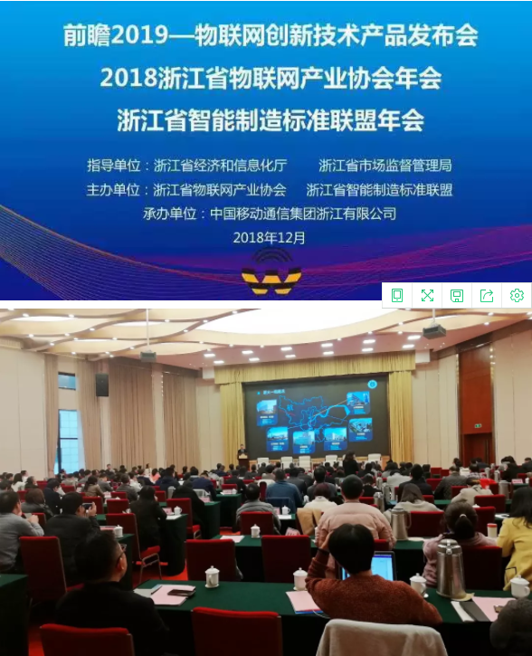 12月19日,前瞻2019——物聯(lián)網(wǎng)創(chuàng)新技術(shù)產(chǎn)品發(fā)布會(huì)暨浙江省物聯(lián)網(wǎng)產(chǎn)業(yè)協(xié)會(huì)及浙江省智能制造標(biāo)準(zhǔn)聯(lián)盟年會(huì)在杭州之江飯店盛大舉行。浙江省經(jīng)信廳副廳長(zhǎng)凌云、技裝處處長(zhǎng)李永偉、浙江省物聯(lián)網(wǎng)產(chǎn)業(yè)協(xié)會(huì)理事長(zhǎng)陳宗年等領(lǐng)導(dǎo)及300多位會(huì)員老總代表參加會(huì)議。