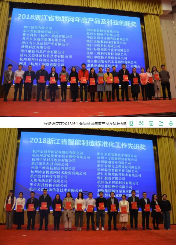 好絡(luò)維榮獲2018年浙江省智能制造標(biāo)準(zhǔn)化工作先進(jìn)獎(jiǎng)